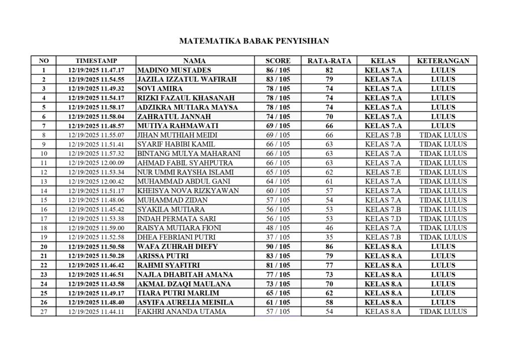 *Apabila terdapat nilai yang sama, maka penentuan kelulusan dilihat dari waktu pengerjaan, yaitu peserta yang menyelesaikan soal lebih cepat.